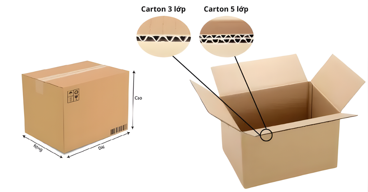 | Tiêu chí | Thùng carton 3 lớp | Thùng carton 5 lớp |
