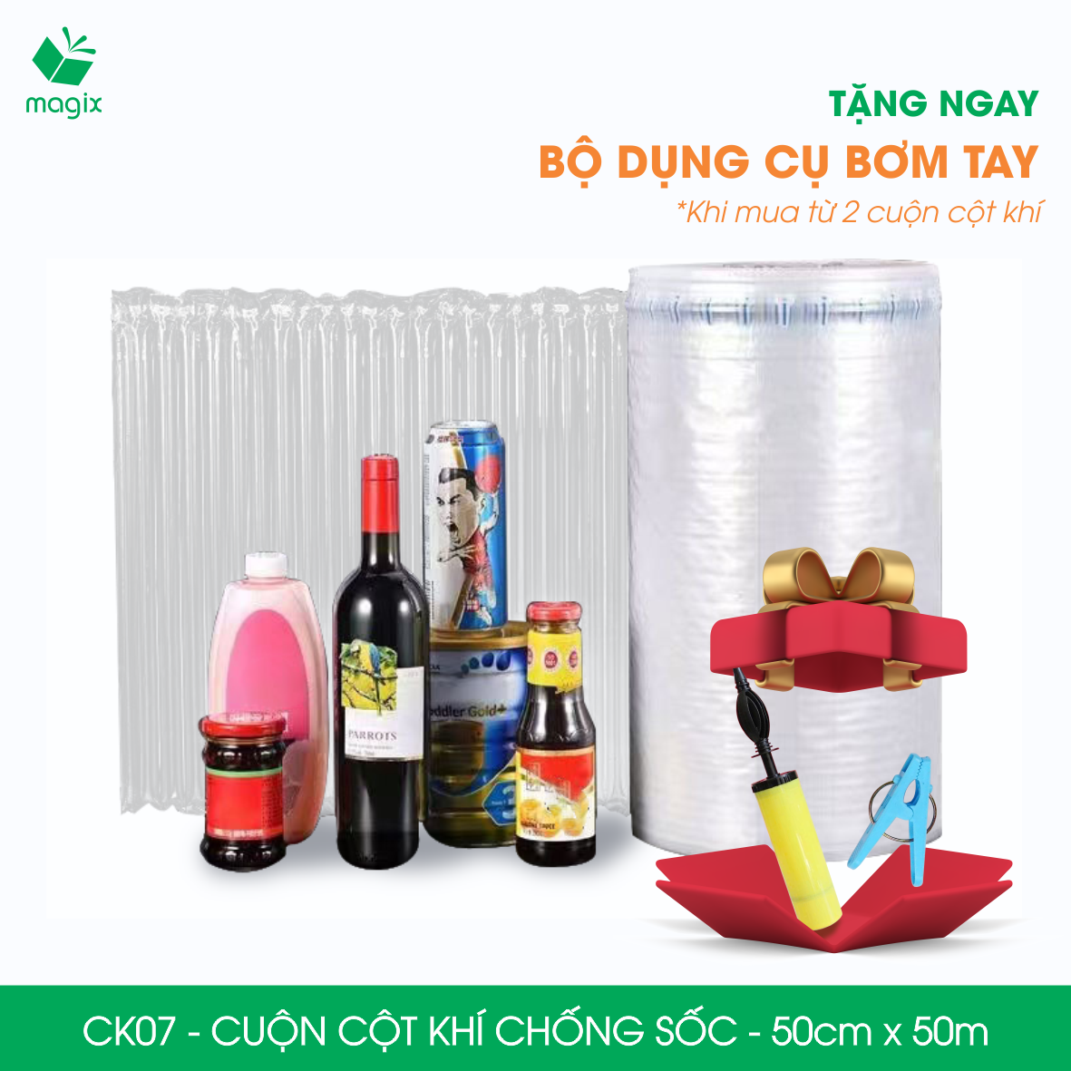 - Sử dụng linh hoạt: Cột khí có thể được cắt theo chiều dài mong muốn, cho phép bảo vệ các mặt hàng có hình dạng và kích thước khác nhau. Bơm hơi nhanh chóng và dễ dàng bằng bơm tay, bơm điện