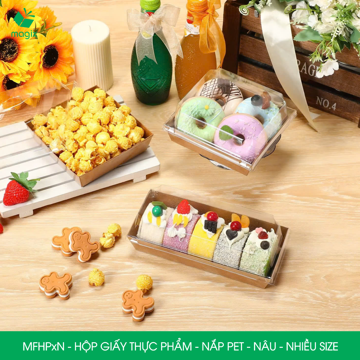 • MFHP4N - Hộp giấy Kraft thực phẩm nắp Pet - Nâu - 20.5x15x6 cm