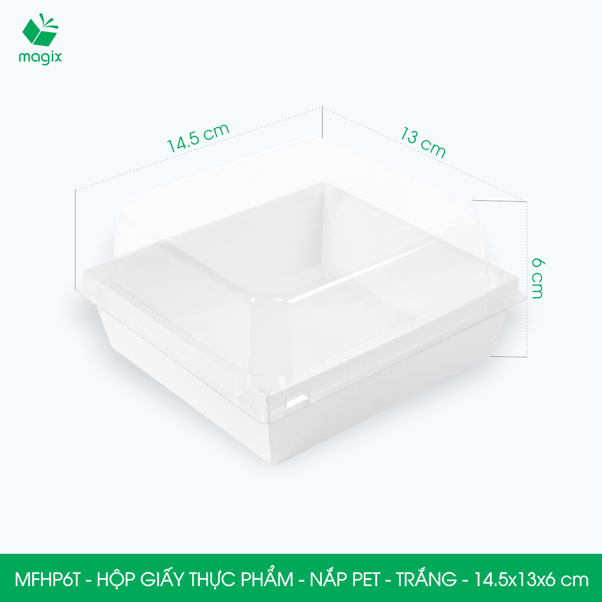 • MFHP6T - Hộp giấy thực phẩm nắp Pet - Trắng - 14.5x13x6 cm
