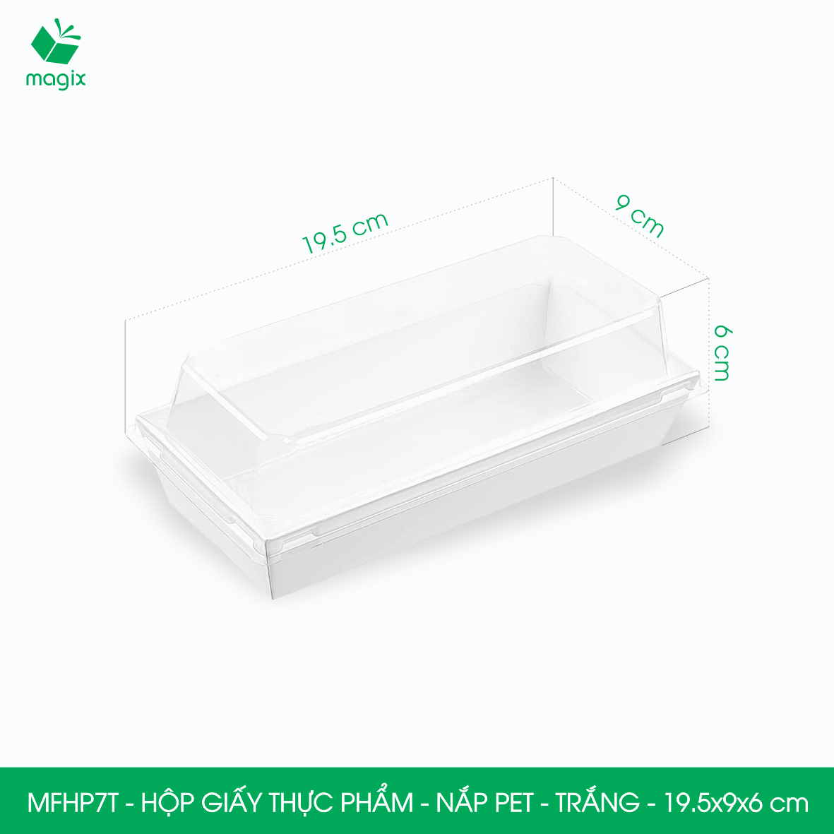 • MFHP7T - Hộp giấy thực phẩm nắp Pet - Trắng - 19.5x9x6 cm