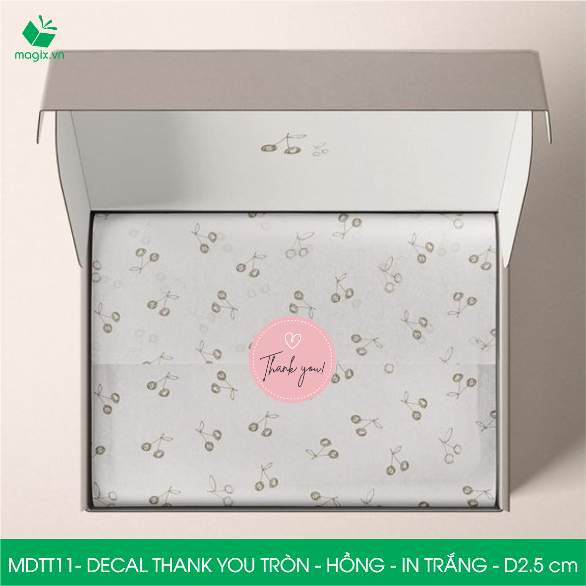 Decal - sticker Thank You là loại nhãn dán có nội dung "Cám ơn" được thiết kế theo hình tròn. Decal Thank You tròn thường được sử dụng để trang trí đóng gói thời trang, quà tặng… để thể hiện sự biết ơn, trân trọng tới người được nhận.