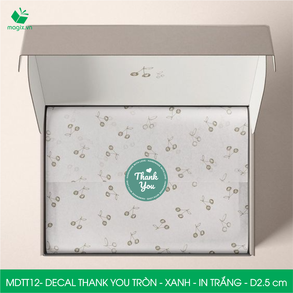 Decal - sticker Thank You là loại nhãn dán có nội dung "Cám ơn" được thiết kế theo hình tròn. Decal Thank You tròn thường được sử dụng để trang trí đóng gói thời trang, quà tặng… để thể hiện sự biết ơn, trân trọng tới người được nhận.