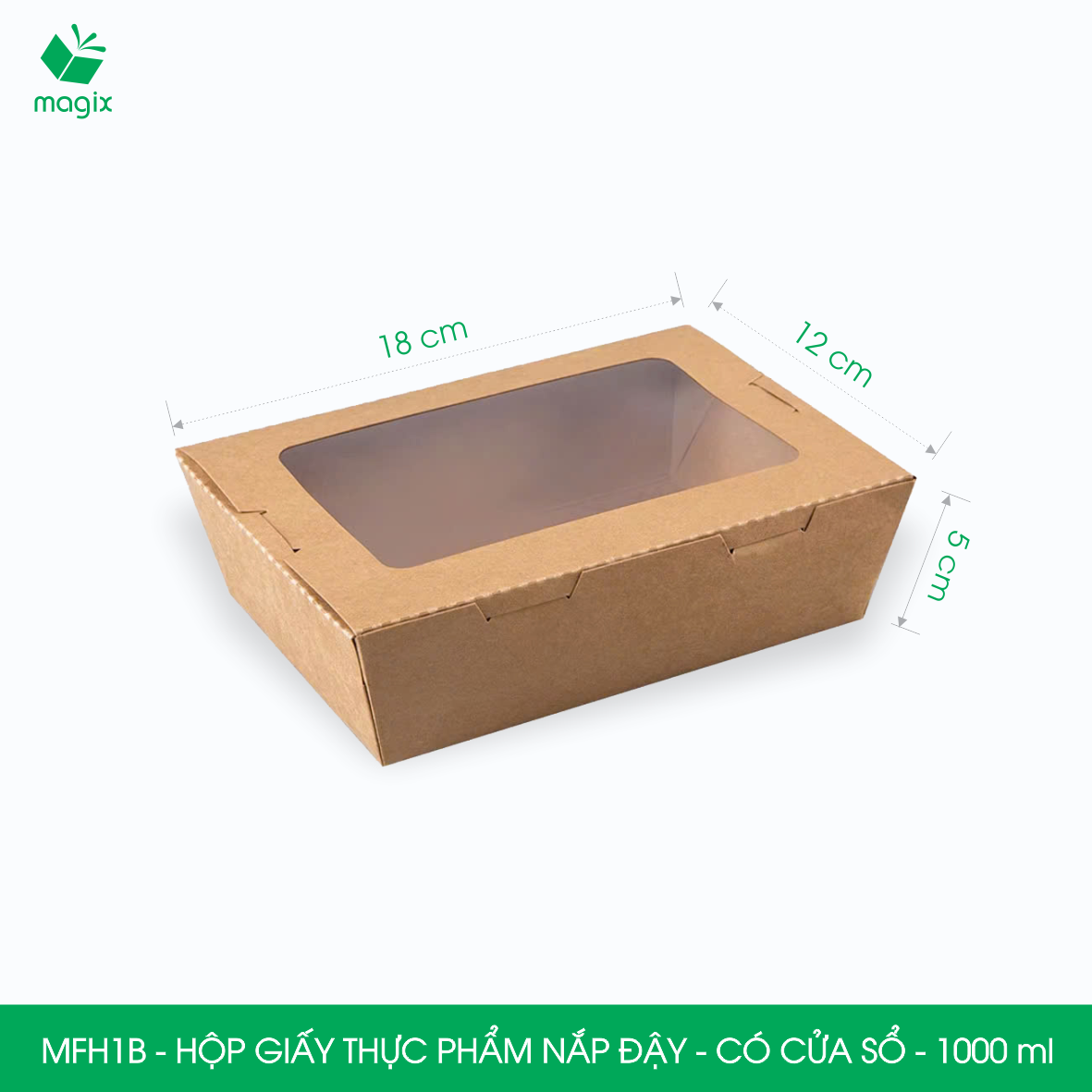 • MFH1B - 1000ml - (Miệng: 18x12 cm - Đáy: 16x10 cm - Cao: 5 cm)
