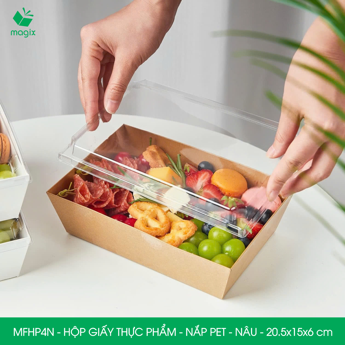 MFHP4N - Hộp giấy kraft thực phẩm - Nắp PET - Nâu - 20.5x15x6 cm