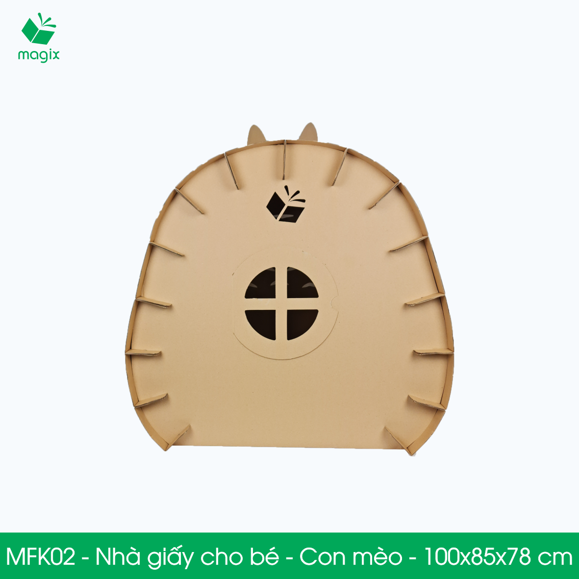 Bộ sản phẩm Nhà Giấy Carton gồm nhiều mảnh carton đã được cắt sẵn, gấp khúc sẵn. Phụ huynh nhận hàng chỉ việc lắp ghép các mảnh lại thành ngôi nhà hoàn chỉnh cho bé.