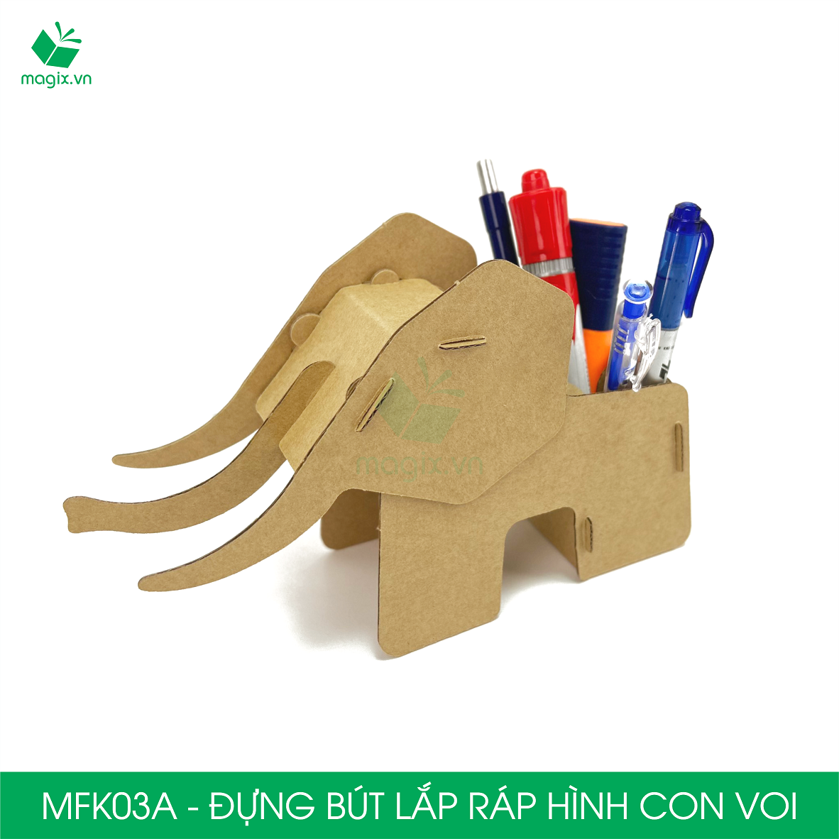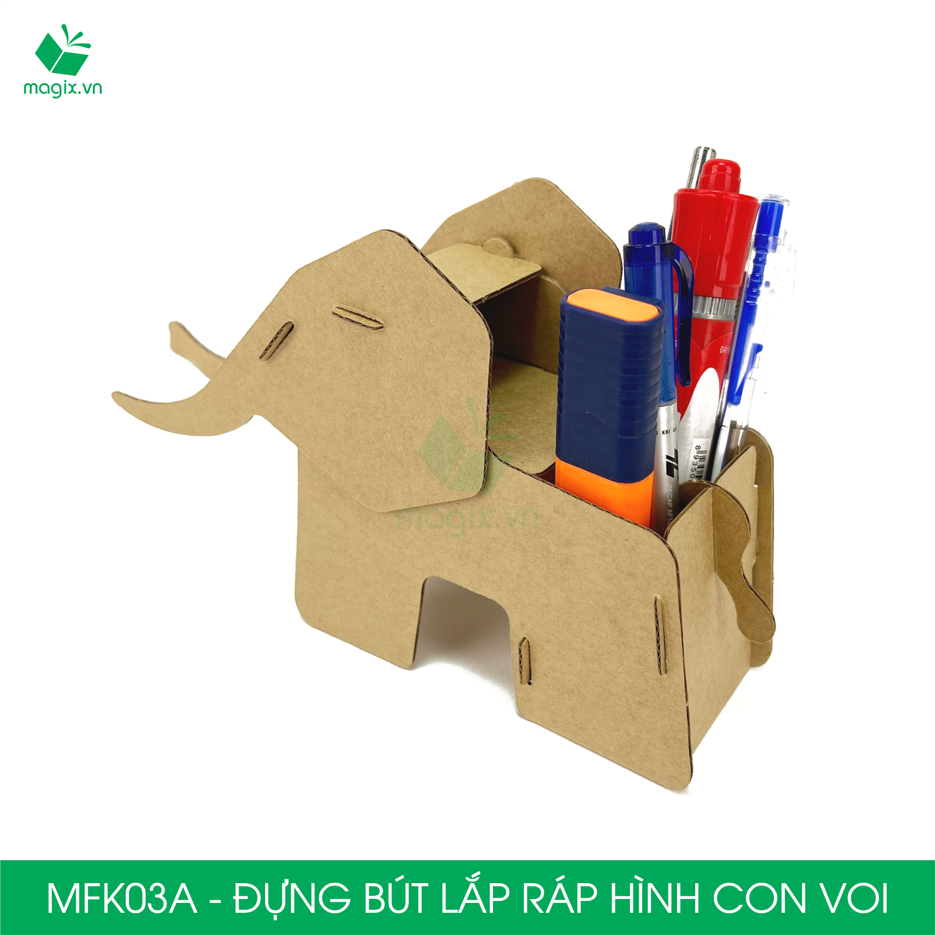 Chất liệu: MFK03A - Đựng Bút Hình Con Voi được làm từ giấy Carton 3 lớp cao cấp với chất lượng giấy siêu cứng giúp cho sản phẩm gọn nhẹ nhưng vẫn đảm bảo độ bền cao.