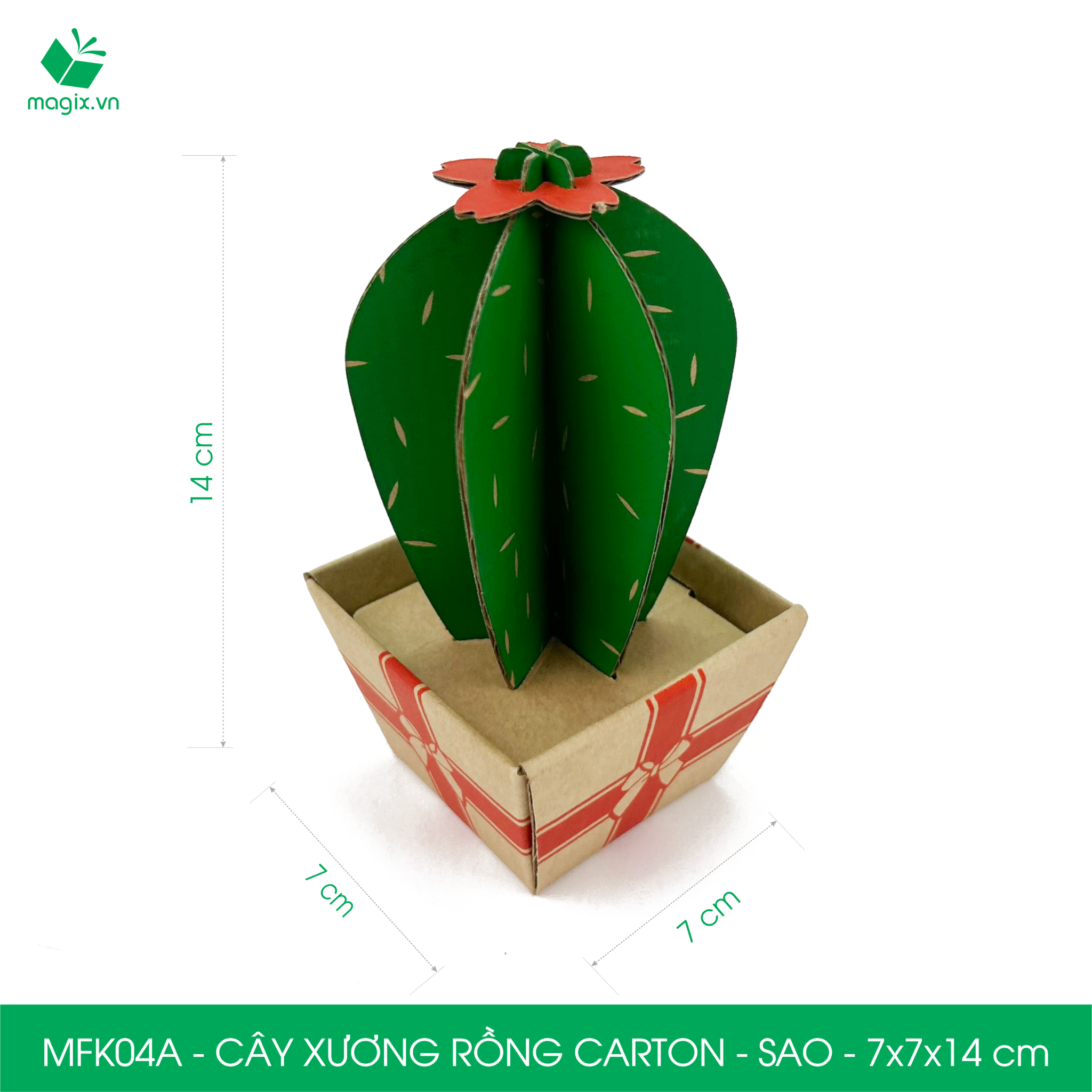 QUY CÁCH KỸ THUẬT Mã và kích thước sản phẩm: MFK04A - Cây xương rồng carton - Sao - 7x7x14 cm MFK04B - Cây xương rồng carton - Saguaro - 9x9x20 cm MFK04C - Cây xương rồng carton - Tai thỏ - 7x10x17 cm MFK04D - Cây xương rồng carton - Trụ - 7x7x18.5 cm