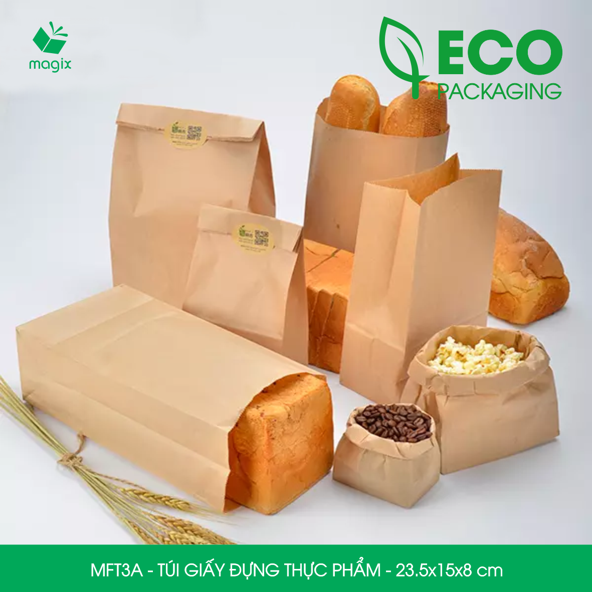 Hiện tại Magix có 2 màu túi là túi trắng và túi kraft nâu. Cả hai mẫu túi này đều có đặc tính chống thấm dầu và đảm bảo an toàn vệ sinh.