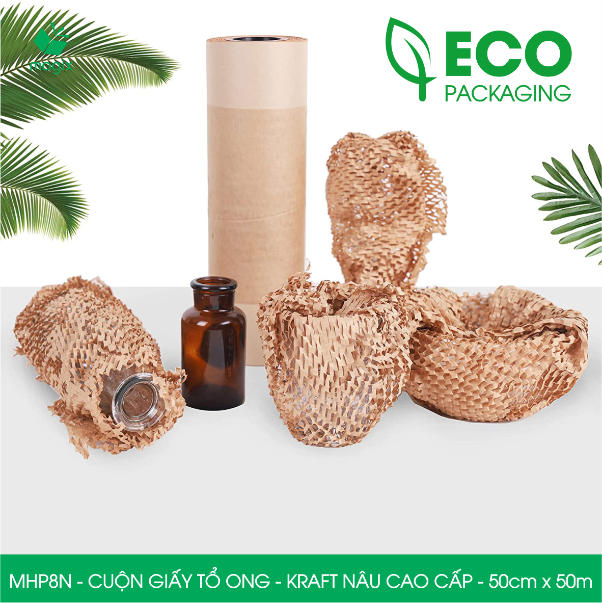 MHP8N - 50cm x 50m - Cuộn giấy tổ ong - Kraft nâu Cao Cấp