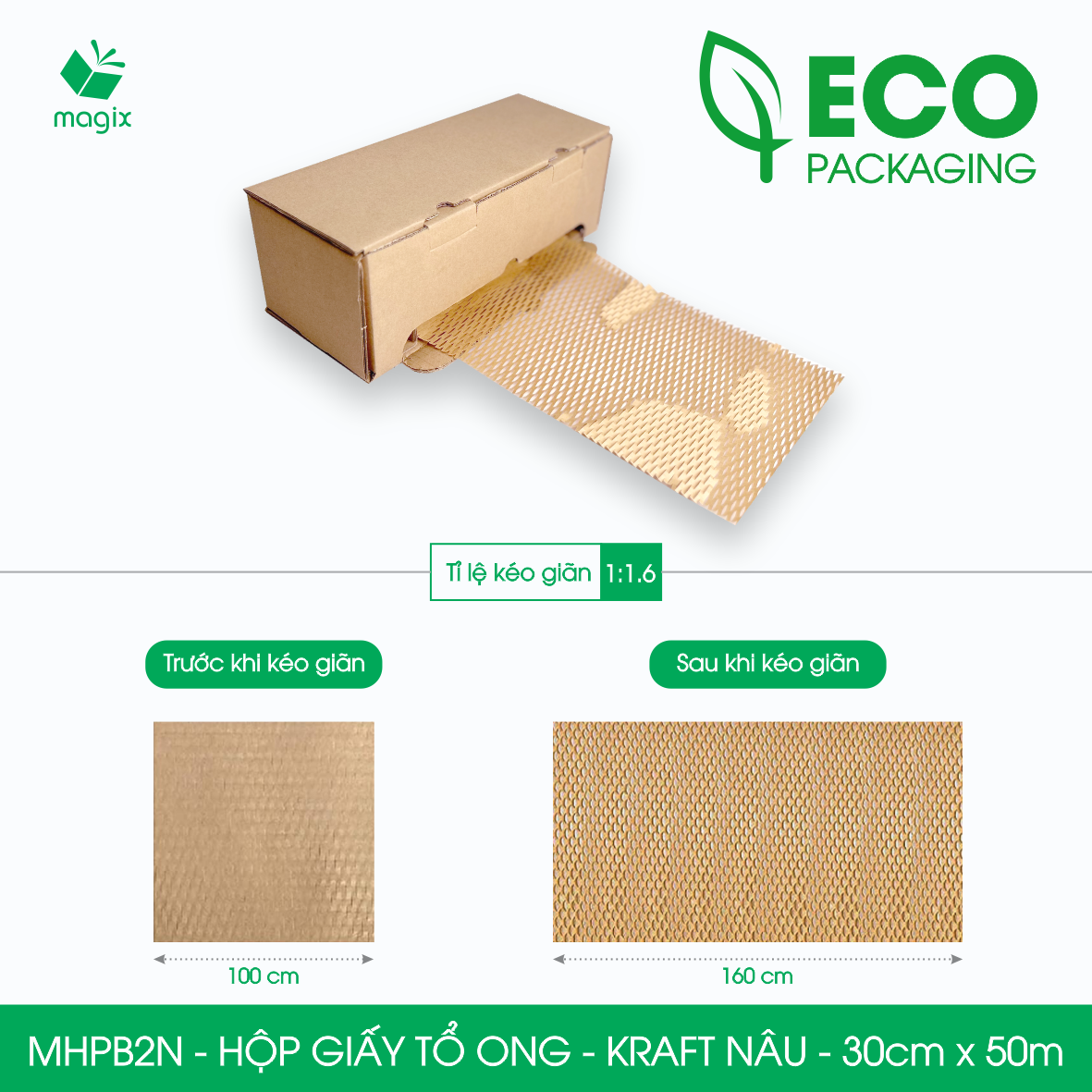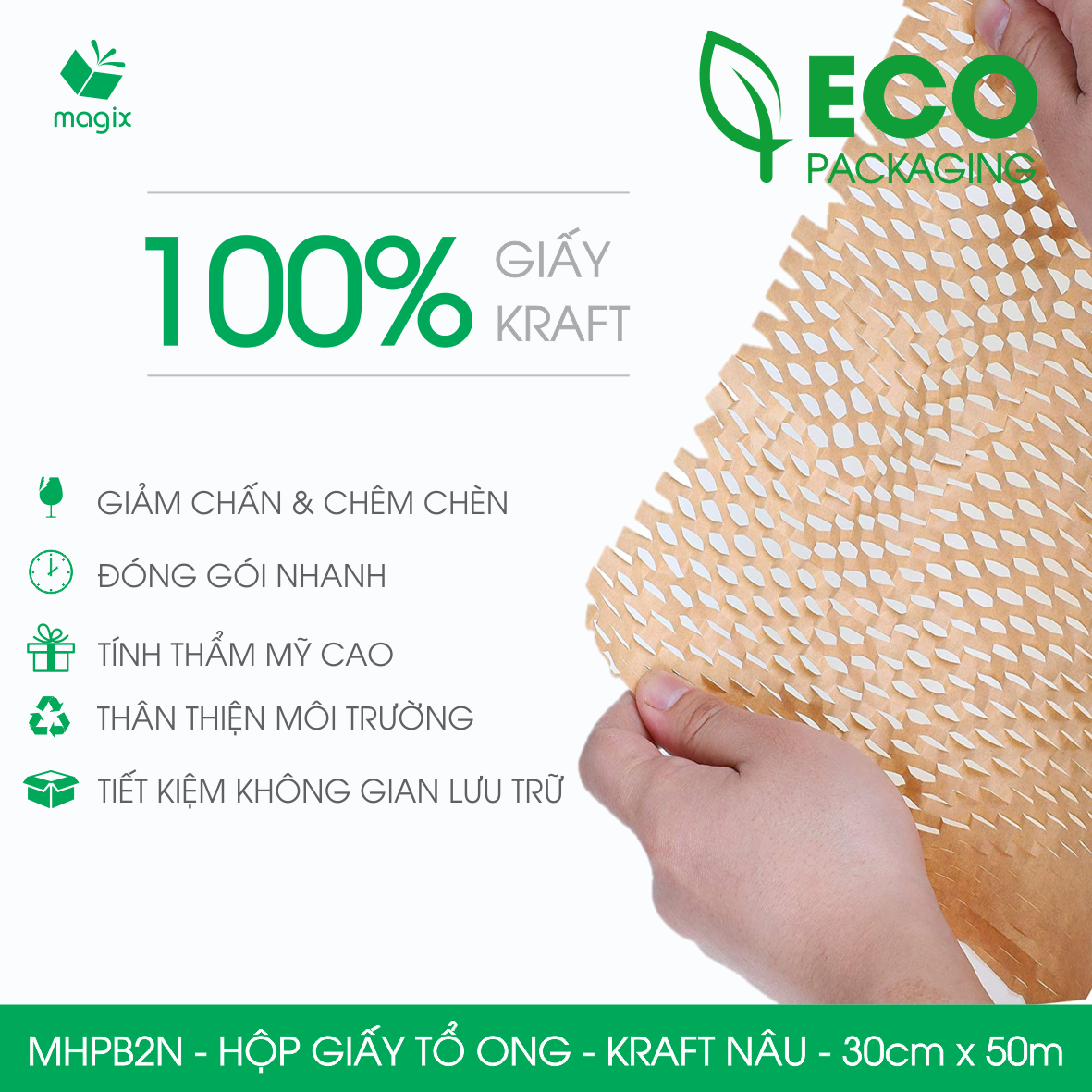- Tiết kiệm không gian lưu trữ: Một cuộn giấy kraft tổ ong khi lưu trữ có thể tiết kiệm không gian gấp 10 lần so với bóng khí có cùng thể tích chống sốc; 1 mét giấy tổ ong có thể kéo giãn ra được 1.5m giấy chèn so với 1m bóng khí.