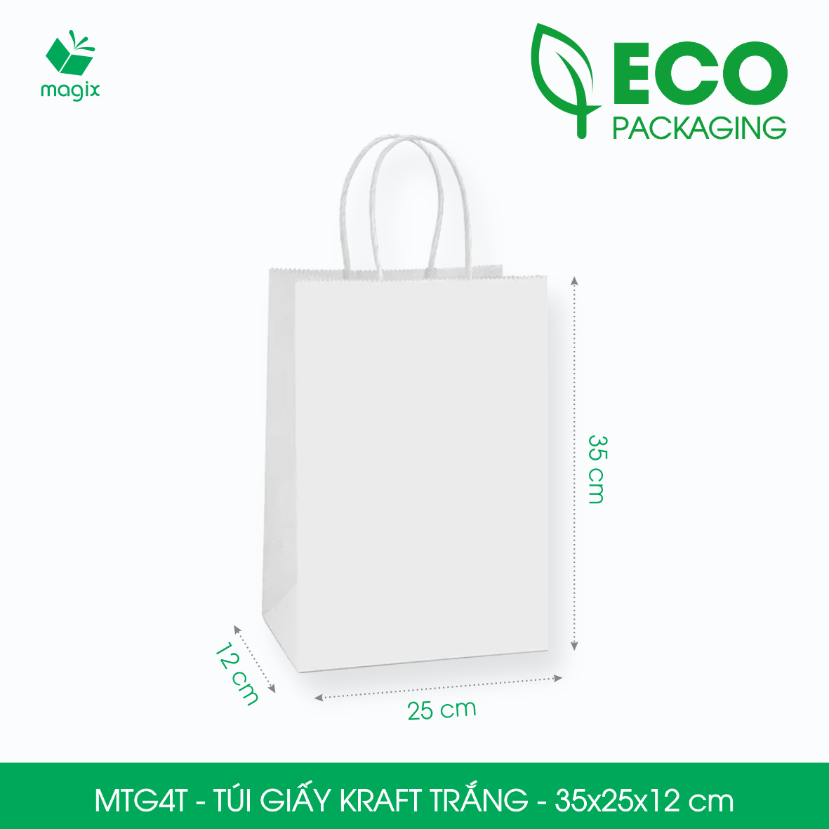 - Kích thước túi giấy Kraft: 35x25x12cm